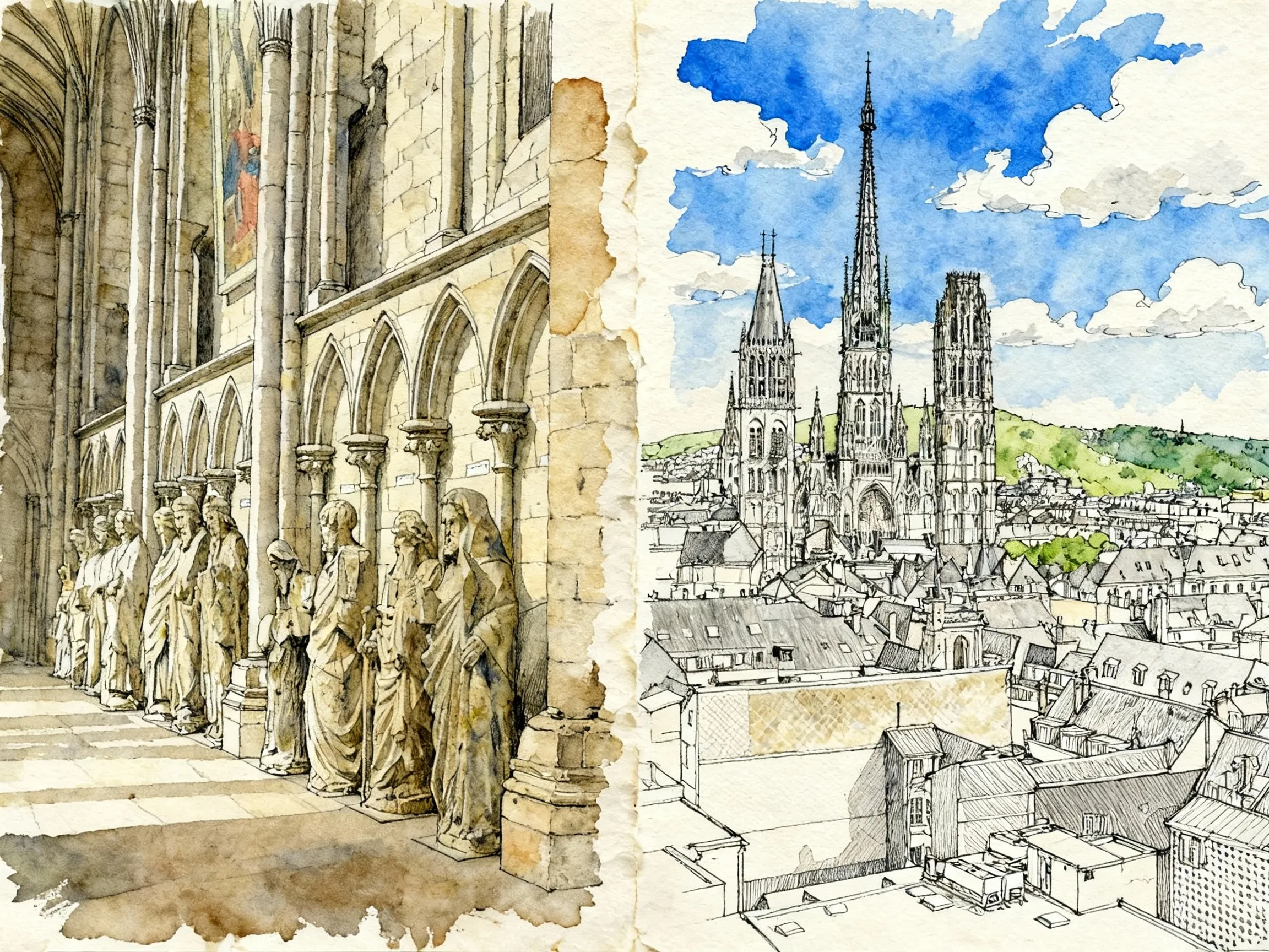 La Cathédrale Notre-Dame m’a bluffé – encore plus impressionnante que sur les photos de Monet que j’admirais. Avec ses 151 mètres de flèche, c’est le plus haut édifice religieux de France ! Je me suis régalé à découvrir ses tombeaux de ducs de Normandie, dont Rollon et Richard Cœur de Lion. Franchement, je n’avais pas imaginé une telle maîtrise de l’architecture gothique.